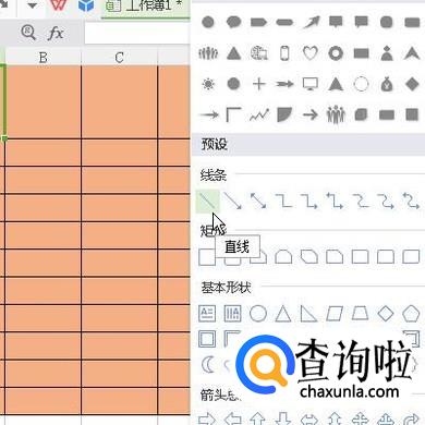 弹出形状面板,从中选择直线形状,