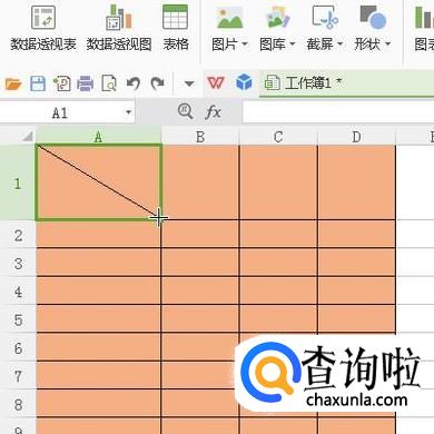 鼠标再在A1单元格这里,从左上角到右下角方向画出一条斜线。