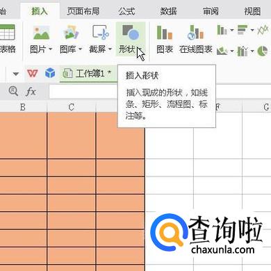 鼠标点击插入选项卡,在弹出的内容中再点:形状