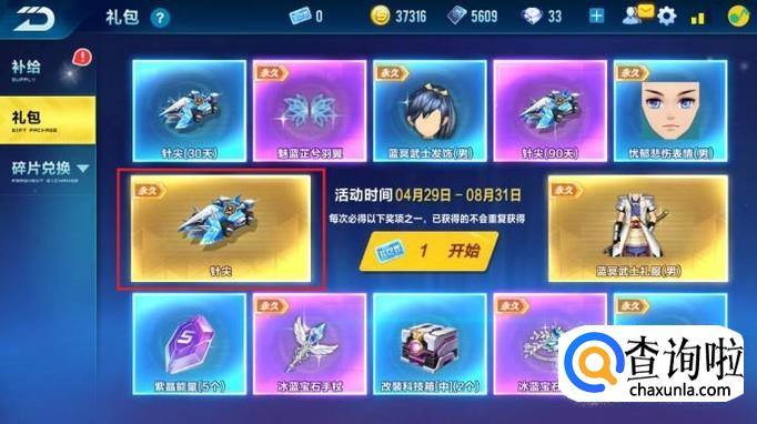 会跳转至礼包中心,消耗礼包卷进行抽奖,即有概率获得A级车“针尖”。
