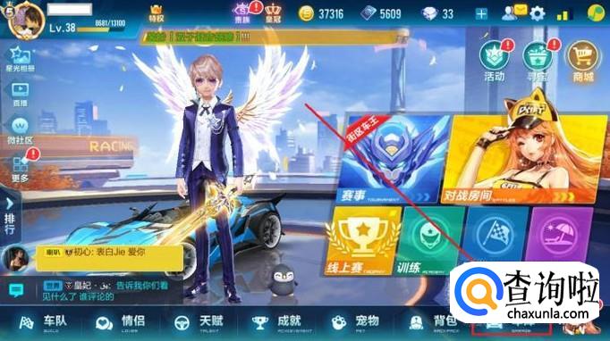 打开飞车手游,进入游戏大厅后,点击右下方的“车库”选项。