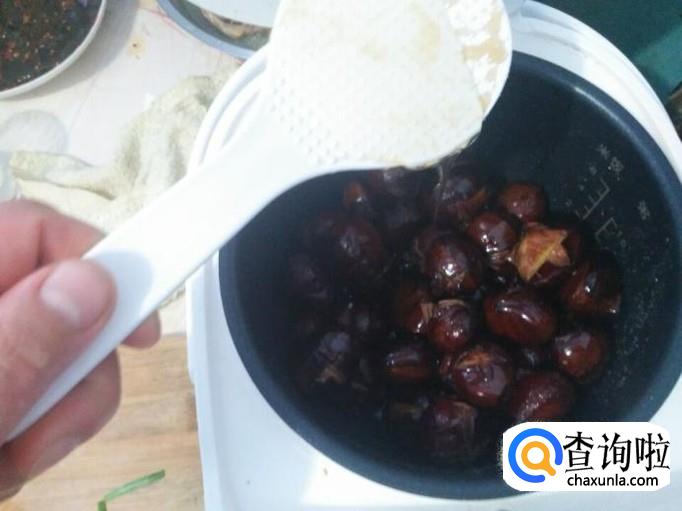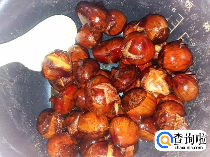 十分钟后,打开盖子看一看,栗子已经熟了。