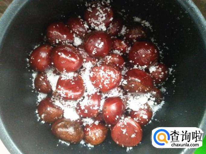 把栗子翻一翻,让栗子和白糖均匀的融合在一起。