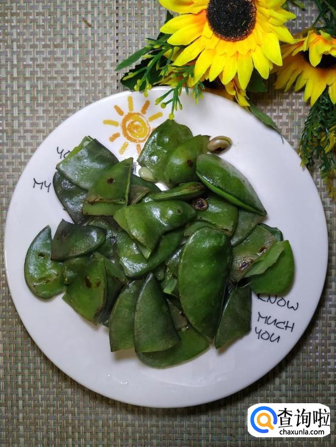 出锅装盘,再准备适量小葱,洗净后切碎,撒上面就可以吃了,注意,扁豆一定要炒熟,否则有一定的毒素。
