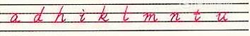 小写字母 b,d,h,k,l 的上端顶第一线。