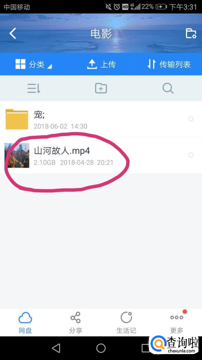 打开百度云盘,点击要播放的视频,如图。
