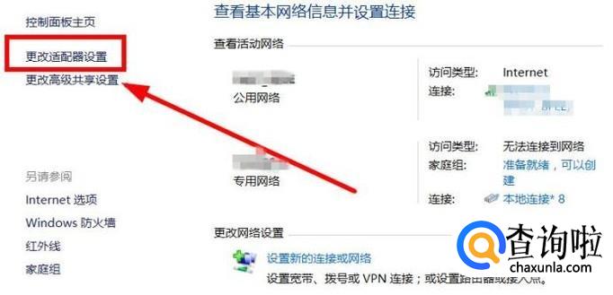 在页面左上角找到“更改适配器设置”,点击进入。