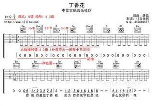 丁香花。这是一首悲伤的歌曲,这首歌基本上每个学吉他的人都会弹,是吉他老师必会推荐的初学者适合学的歌曲。