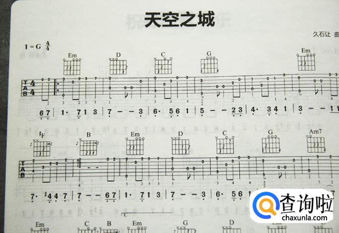 天空之城。这首歌应该是人尽皆知的了,是宫崎骏动画最经典的配乐,其中的吉他指谱也很简单,十分好学。