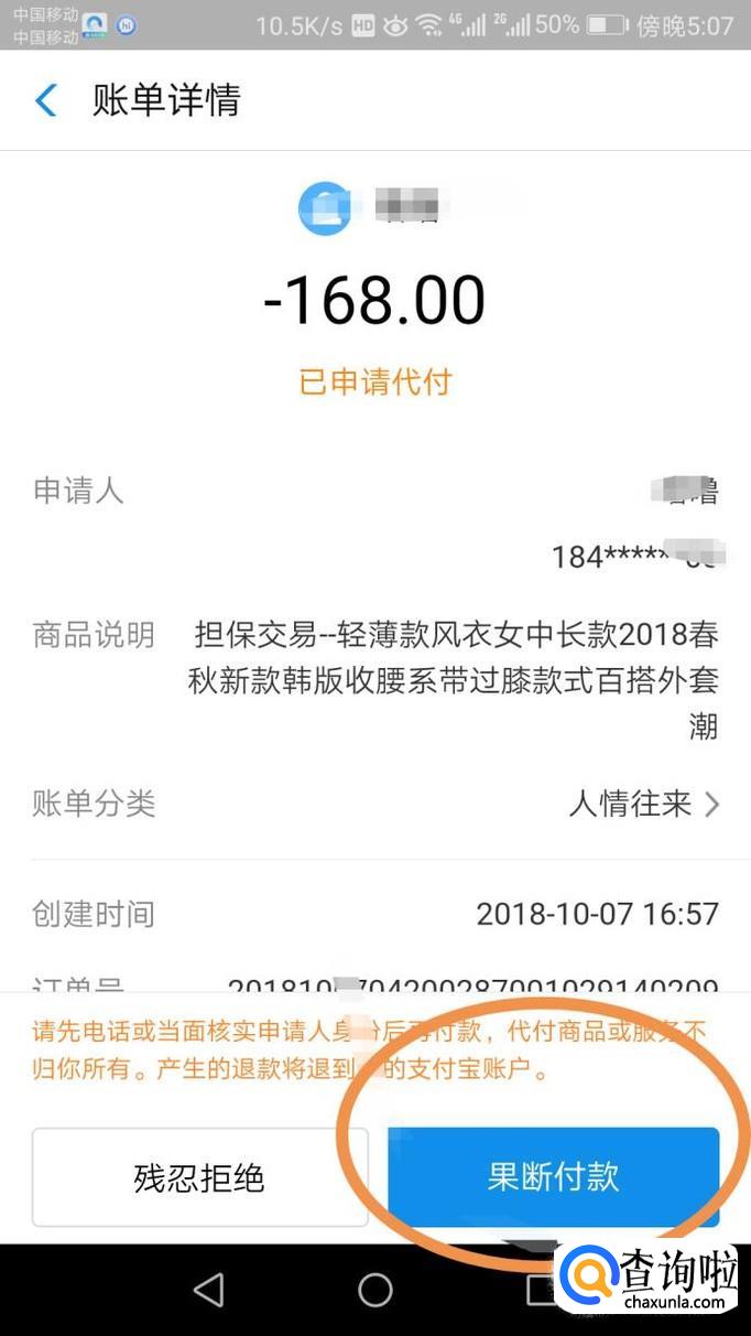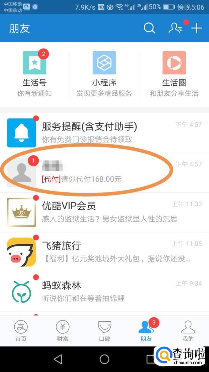 接着,可以看到有代付的消息,点击进去,如图所示