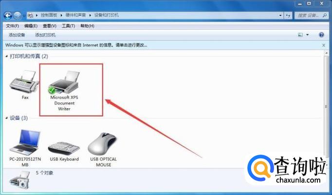 查看设备和打印机
