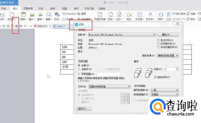 打开WPS页面,在上面找到【打印机】的图标并点击它,会弹出一个窗口,选择是否双面打印,如下图所示: