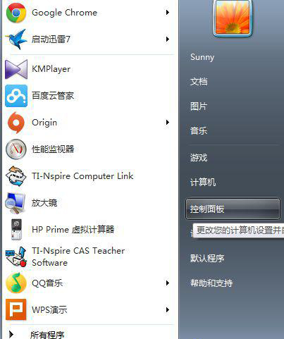 1、打开电脑“开始菜单”,打开侧边的控制面板;