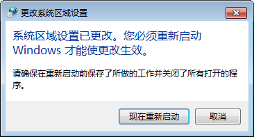 4、确定后会提示重新启动,重启再打开原来的游戏,即可解决乱码问题。
