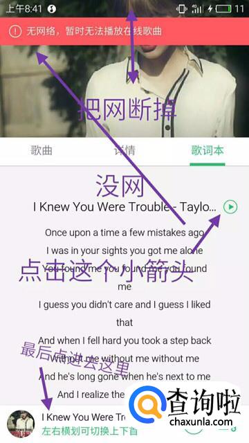 这时把流量WIFI关掉,使手机处于没有网络的状态。点击右边播放按钮。
