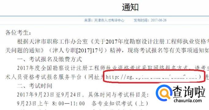 等报名通知出来之后,我们打开通知,在上面可以看到报名时间、考试时间、费用等项目,上面还有报名平台的网址。