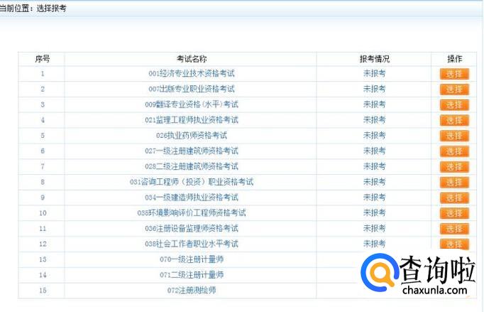 找到注册电气工程师那一项,点击“选择”(当前还没到报名时间,上面没显示),然后进行报名缴费即可。