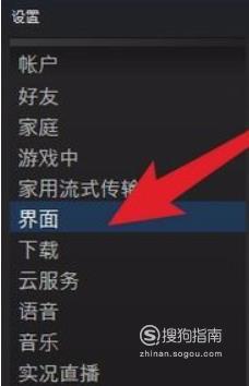 在设置的页面中,我们再找到界面选项,点击进入。