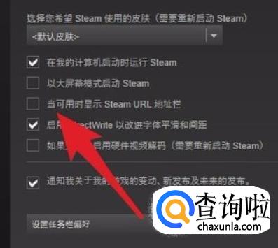我们会看到一个“当可用时显示steam URL地址栏”,勾选。