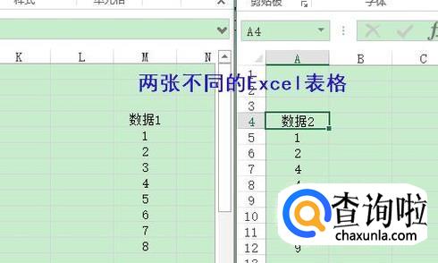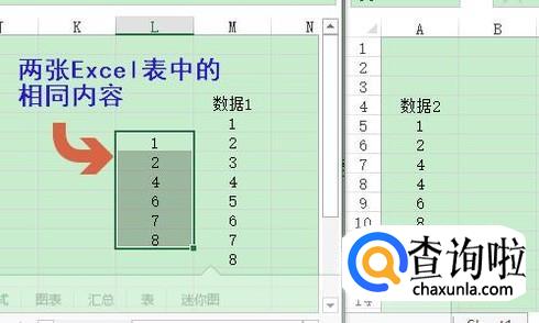 如果我们想要核对两张Excel表里面的内容,又该怎么办呢?这个时候我们就要用到“高级筛选”功能了,如下图就是两张不同的Excel表格,同样假如我们需要对比数据1和数据2;