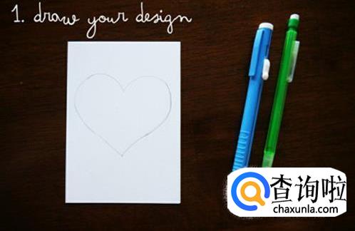 首先在卡纸上画出一个心形。