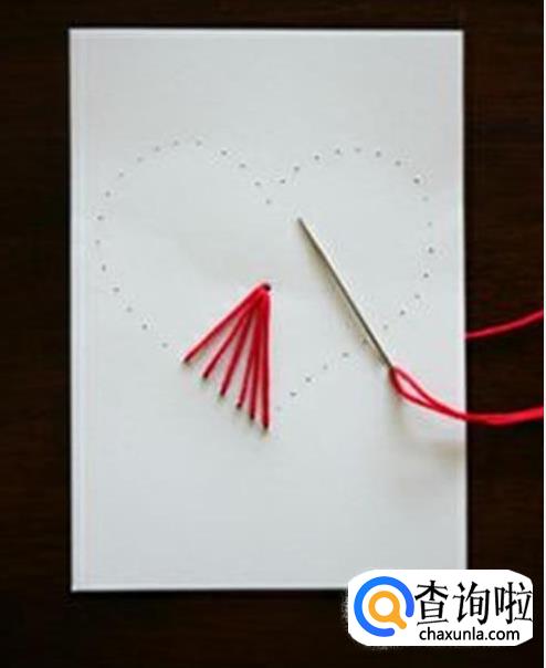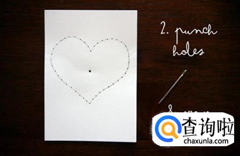 然后用针戳出很多小孔,爱心的中间也要戳出一个小孔来。