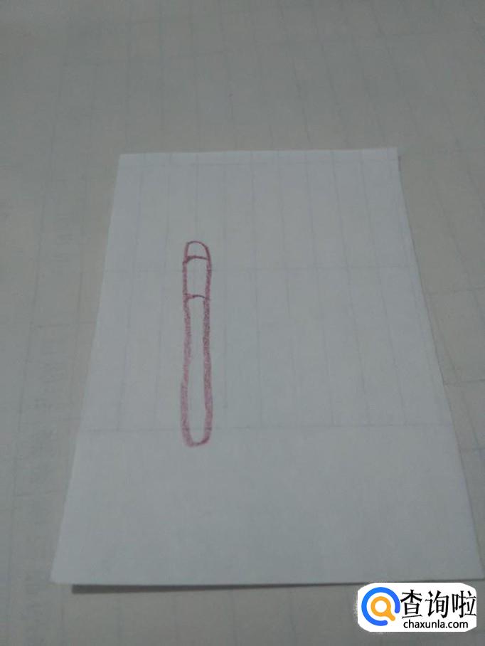 先用棕色彩笔在纸上画一个长长的椭圆形,表示镰刀上的木棒。