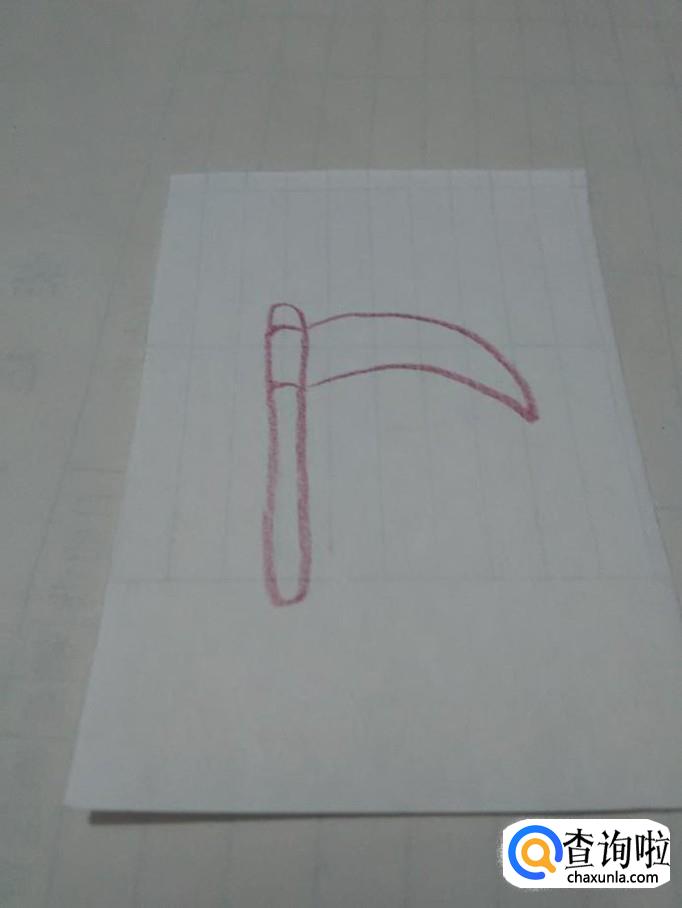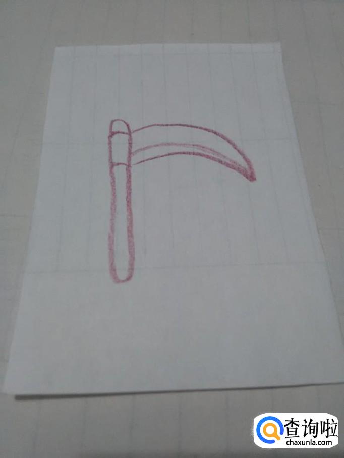 在两条弧线之间再画一条弧线,表示镰刀的刀刃,镰刀就画完了。