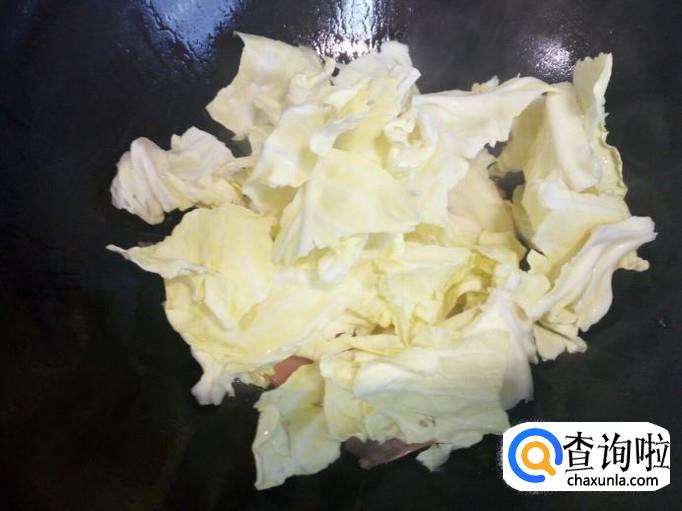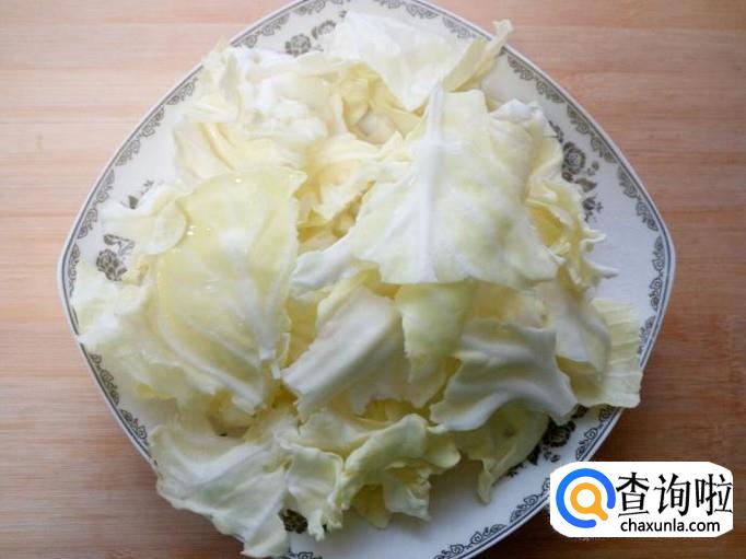 包菜用手撕成片,用水清洗干净,控干水分。