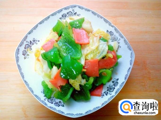 火腿肠 1根(85克),麻辣青椒 2个,包菜 150克。