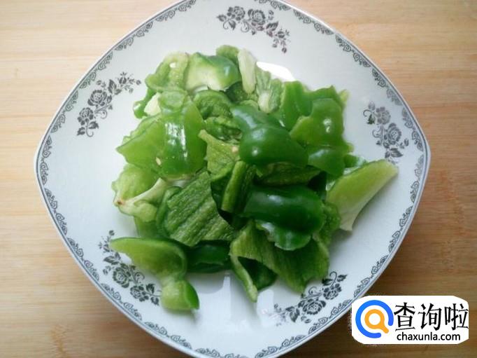 青椒用水清洗干净,控干水分,用手撕成片。