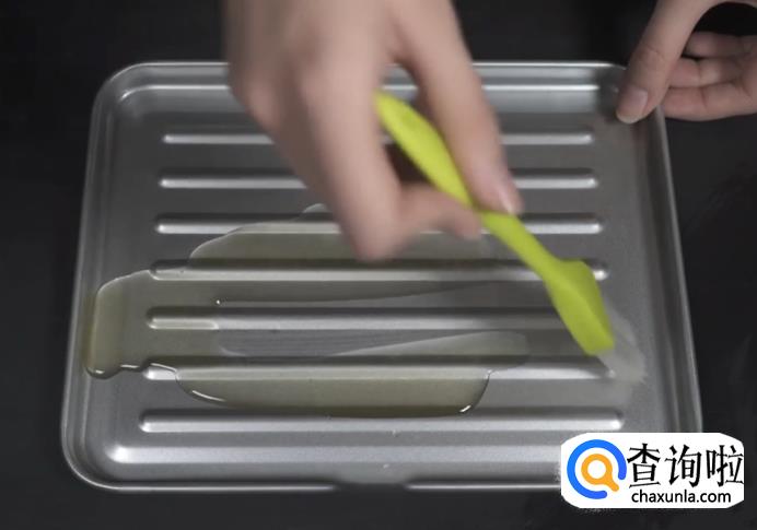 在烤盘上面用刷子刷上油,在刷油的时候需刷均匀。