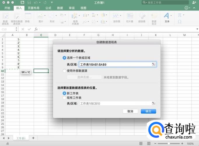 点击后弹出创建界面,在表格中选择相应的区域,然后点击“确定”