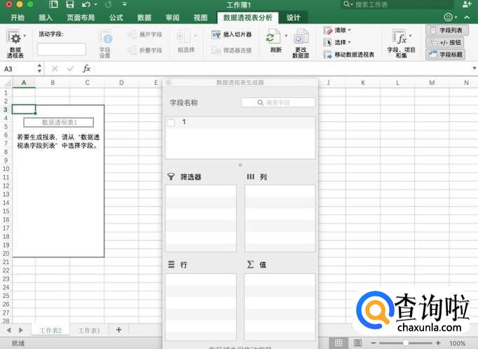 确定后即可成功创建数据透视表,在生成器中进行需求选择即可。