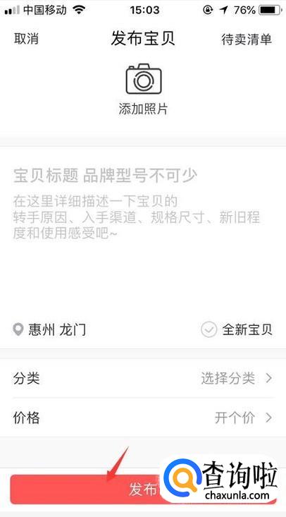 在发布的时候要添加商品的照片,价格和入手原因或者是商品相关的一些情况等,随后点击下方的发布。