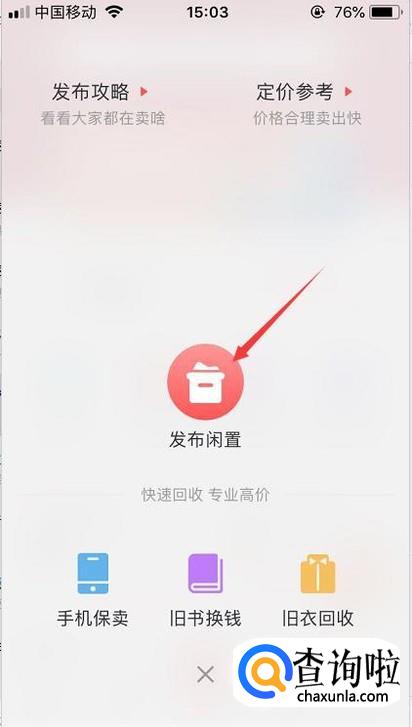 进入到卖二手功能后,我们点击发布闲置去发布要出卖的商品。