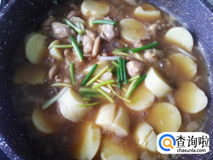 然后下适量的水淀粉翻炒均匀,大火收汁,最后下香葱翻炒均匀,熄火。