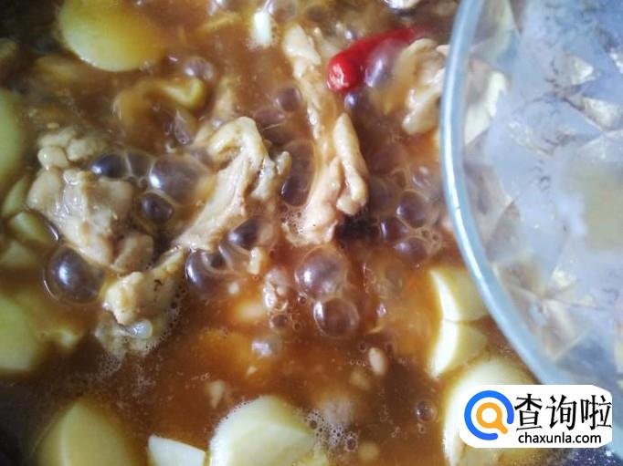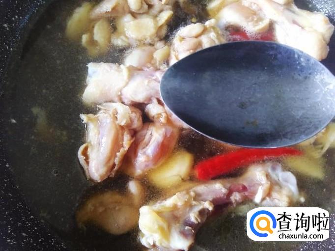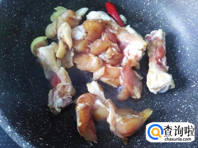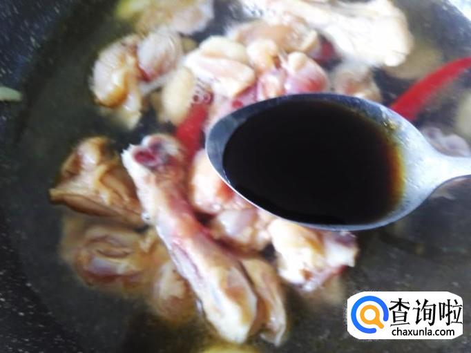 鸡翅肉下锅,翻炒入味,然后加小半碗水,1勺生抽。