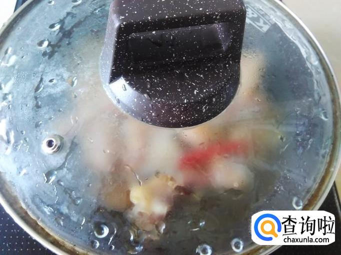 1勺料酒盖上盖子大火煮沸转小火焖4分钟左右。