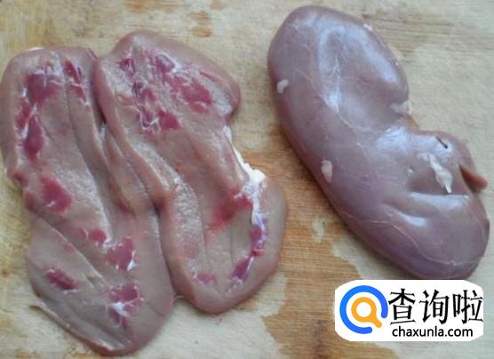 猪腰切开,把里面的经络全部切除,这样就不会有异味了,然后切成片。