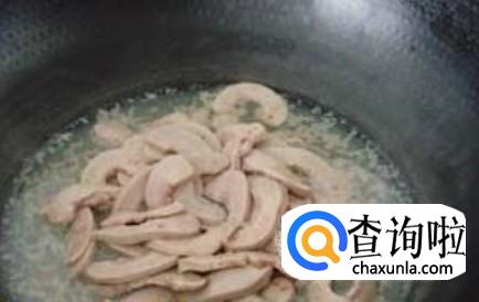 用锅把水煮沸,放猪腰进去灼2分钟左右捞上碟子。