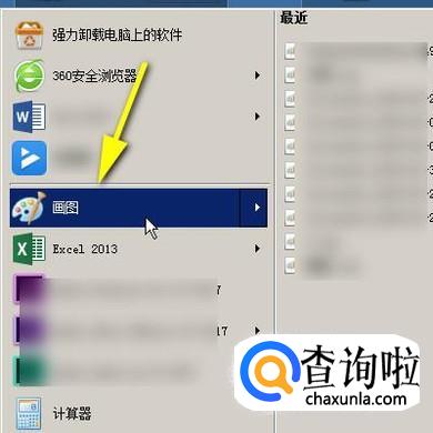 在电脑桌面的左下角,鼠标点击“开始”,弹出的菜单中再点:画图;启动画图工具,并进入到画图操作界面中。