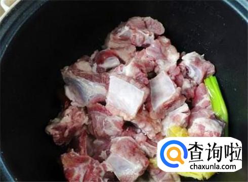 电饭锅或者电饭煲里面加上生姜片和几根葱,把排骨放进去,加上清水炖。