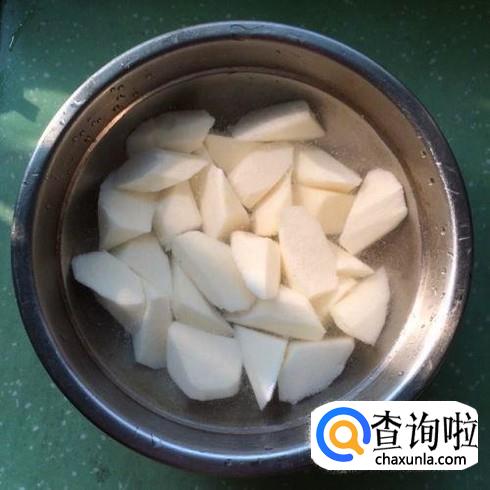 山药去皮,清洗干净,切成块,过程中最好是带着手套,不然可能会过敏,我对山药的那些粘液就过敏,大家要注意哈。