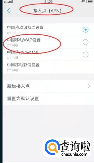 然后选择【中国移动WAP设置】选项,如下图所示: