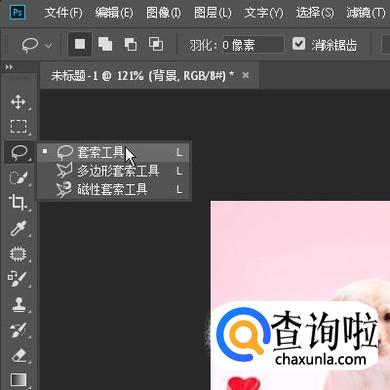 接下来,用套索工具把小狗给抠出来。按L键,调出套索工具。