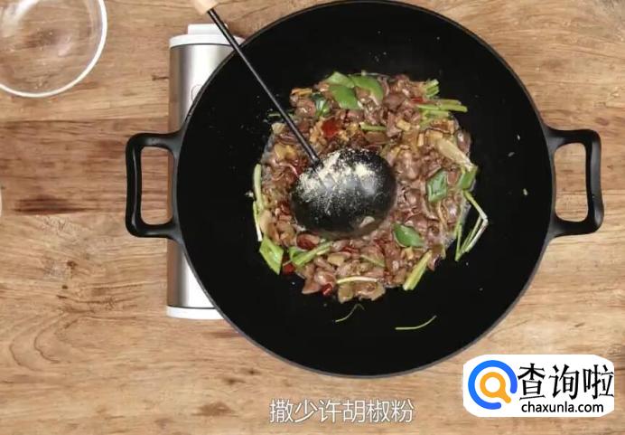 再淋入碗汁、撒少许胡椒粉,炒匀即可出锅。