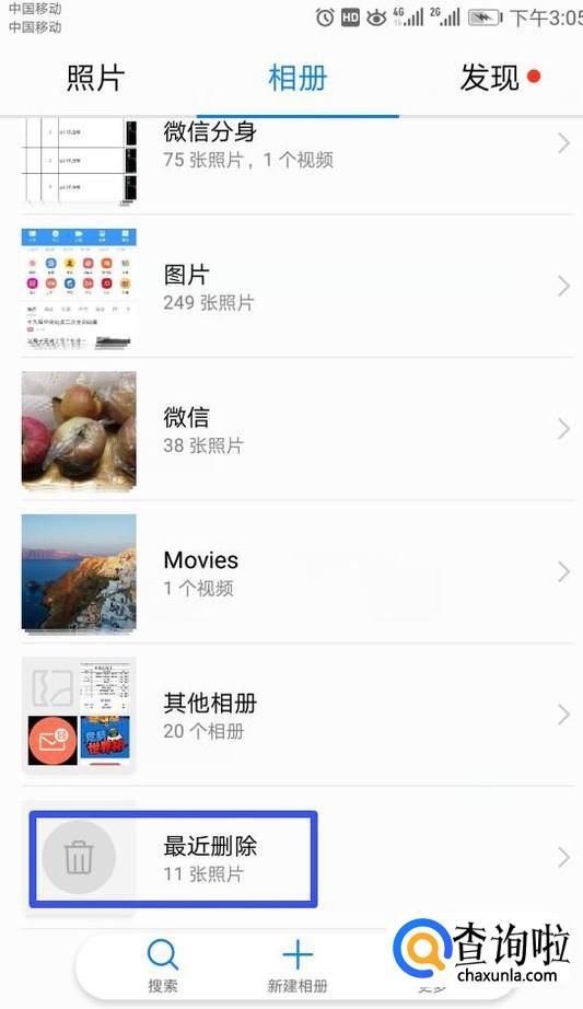 进入图库之后,我们下拉界面,找到最近删除,我们点击它;