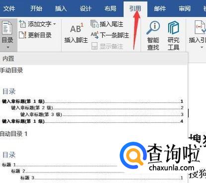 接着再点击引用,然后点击目录,这时候就可以直接选择对于级别的目录了,直接选进来即可,然后将使用链接不使用页码去除掉,这样会更加方便一些。