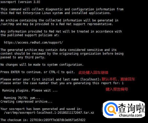 最后一条sosreport用于收集系统配置以及架构信息并输出诊断文档,格式是